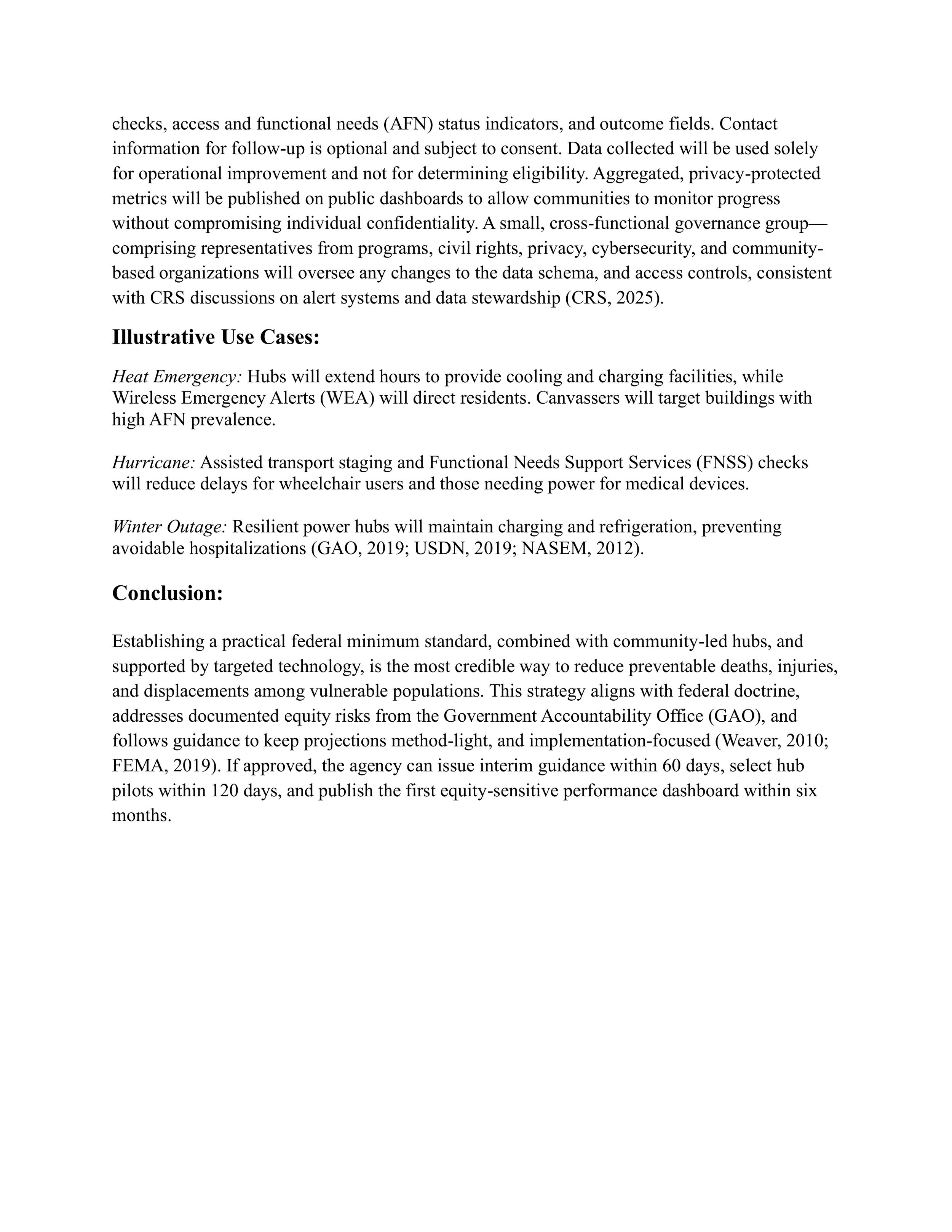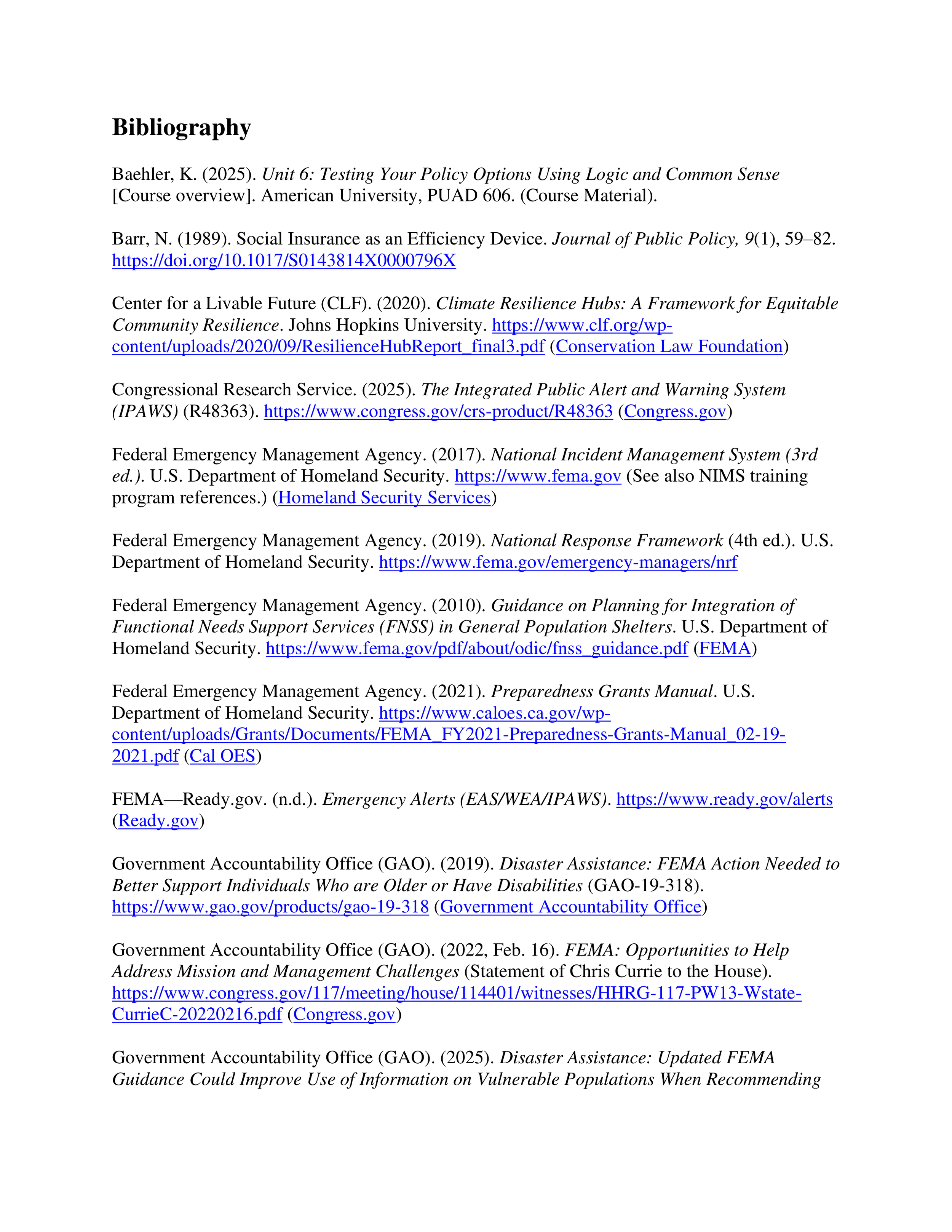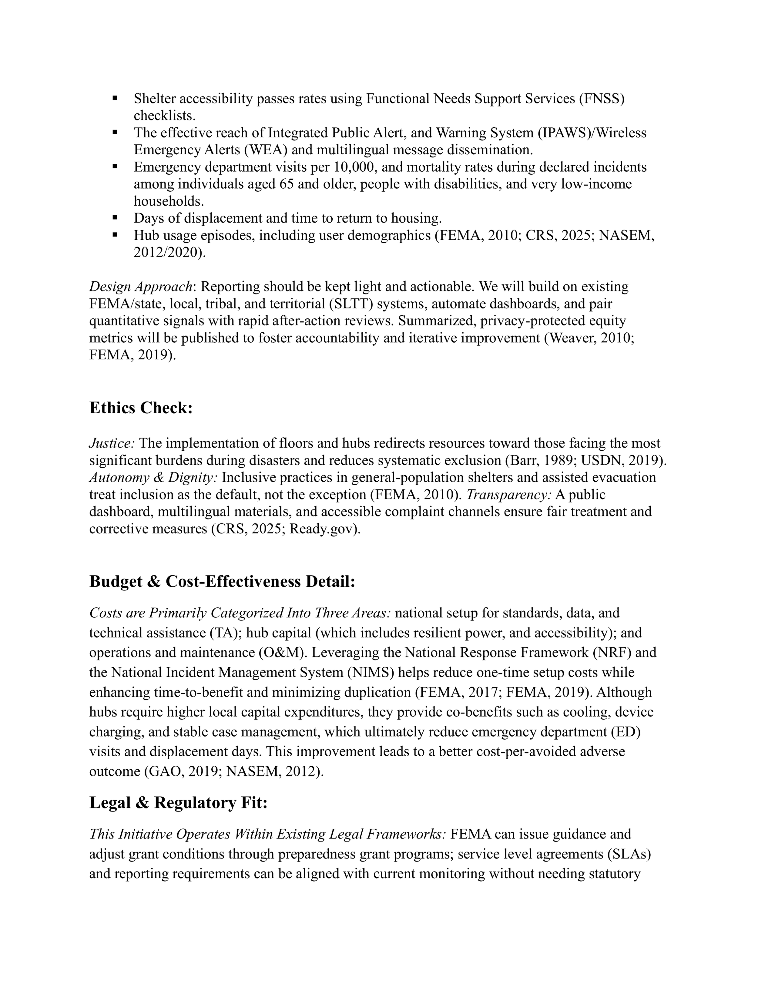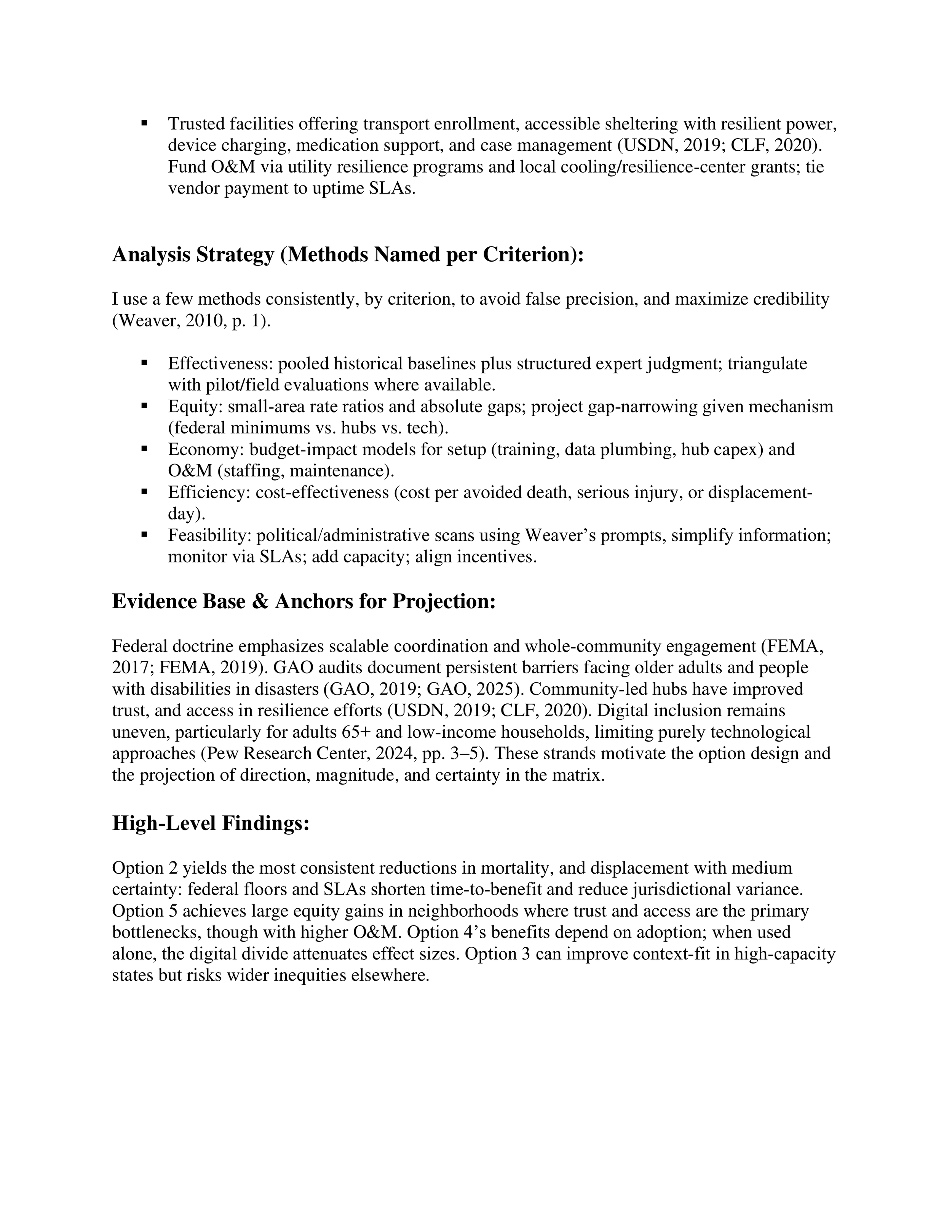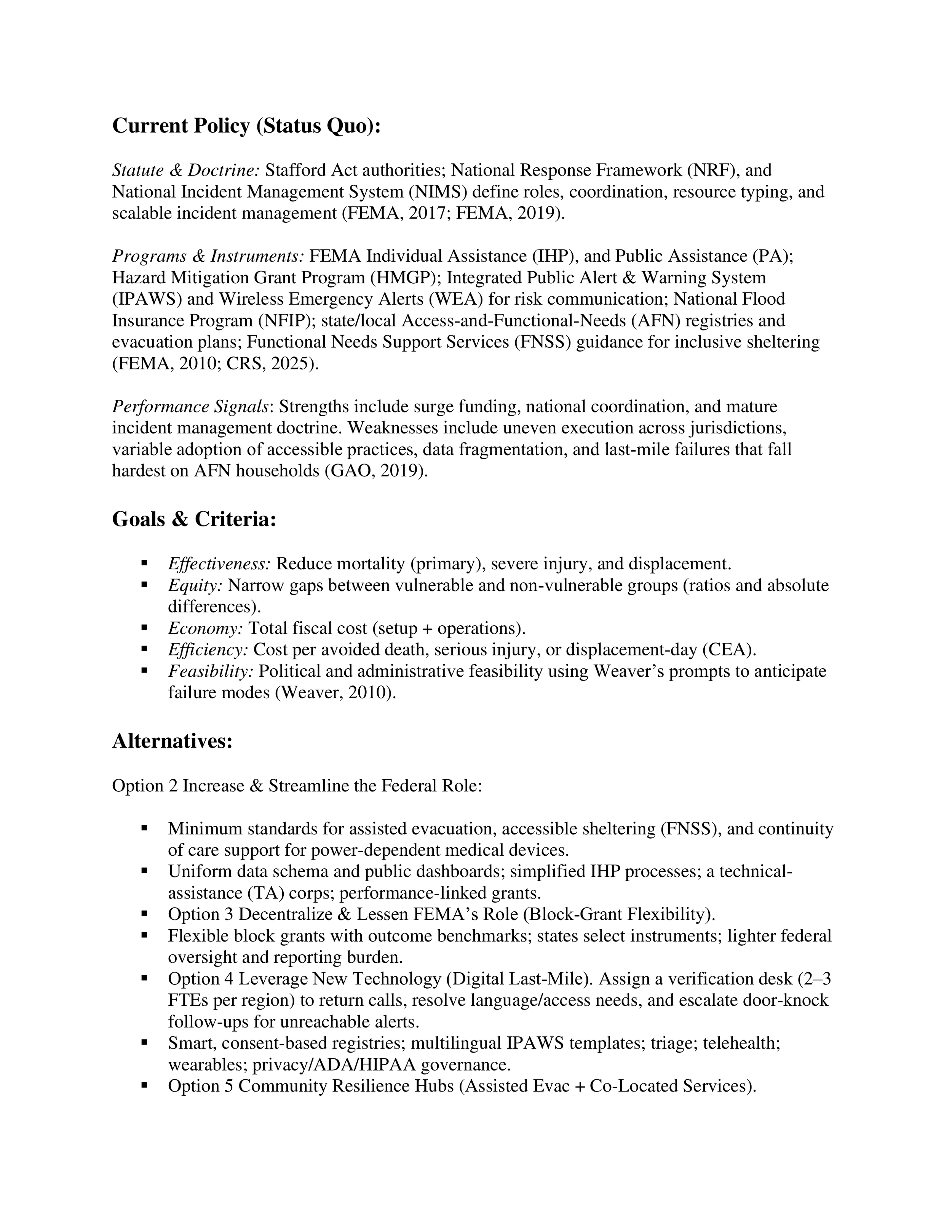 This work mirrors the kind of analysis used in real policy settings: clearly defining a public problem, testing alternatives, identifying failure modes, anticipating implementation barriers, and making recommendations that balance effectiveness, equity, cost, and administrative reality. That makes it directly relevant to public policy, emergency management, social-impact strategy, and government-facing analytical work.